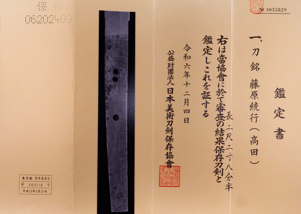 ・All our swords are registered in the Agency for Cultural Affairs as artwork and The Board of Education(Cultural properties protection Committee); therefore each sword has the registration card, issued by the Board of Education.