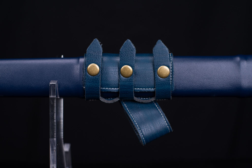 Scabbard: Made of wood and covered in deep blue artificial leather, accented with brass fittings, it complements the sword’s noble look while keeping the blade secure.