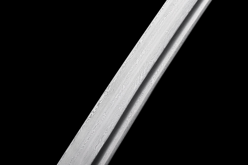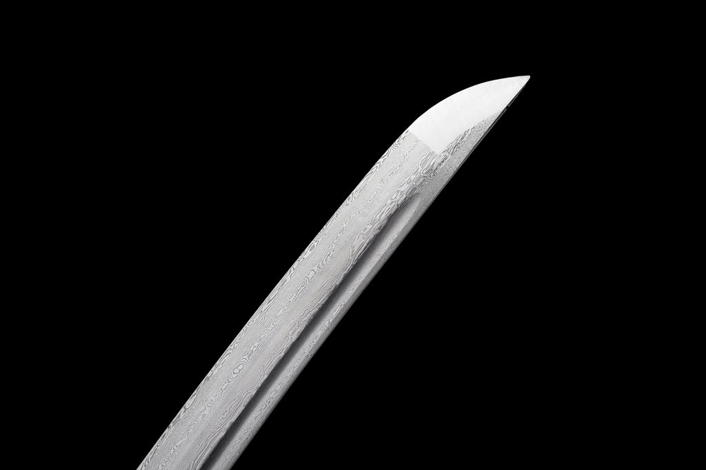 The Ginryū Wakizashi 銀龍 (“Silver Dragon”) celebrates classical Japanese aesthetics in a compact form. Its Damascus steel blade displays flowing steel layers for a refined, traditional look.