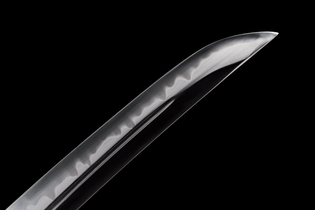 Hand-forged T10 steel with a real hamon line, showcasing the blade’s differential hardening and mirror-polished finish. The edge embodies the perfect balance between sharpness and durability. |