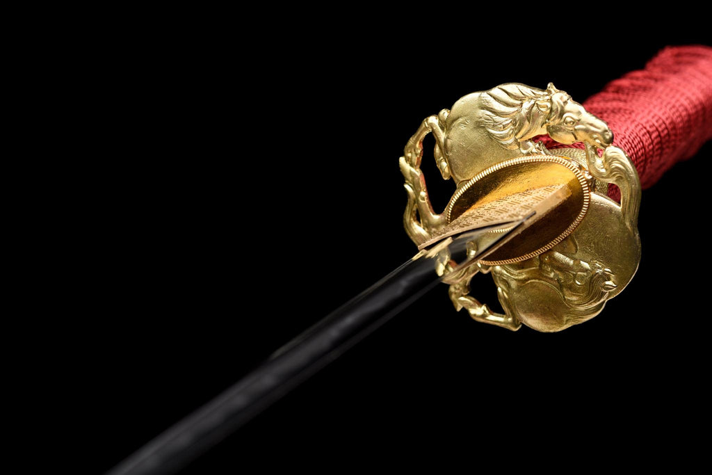 Forged from T10 high-carbon steel and polished to reveal a natural hamon, this tanto blends fine artistry with cutting precision. The golden copper fittings, sculpted with galloping horses, symbolize vitality, freedom, and forward motion — the unstoppable energy of spring returning.