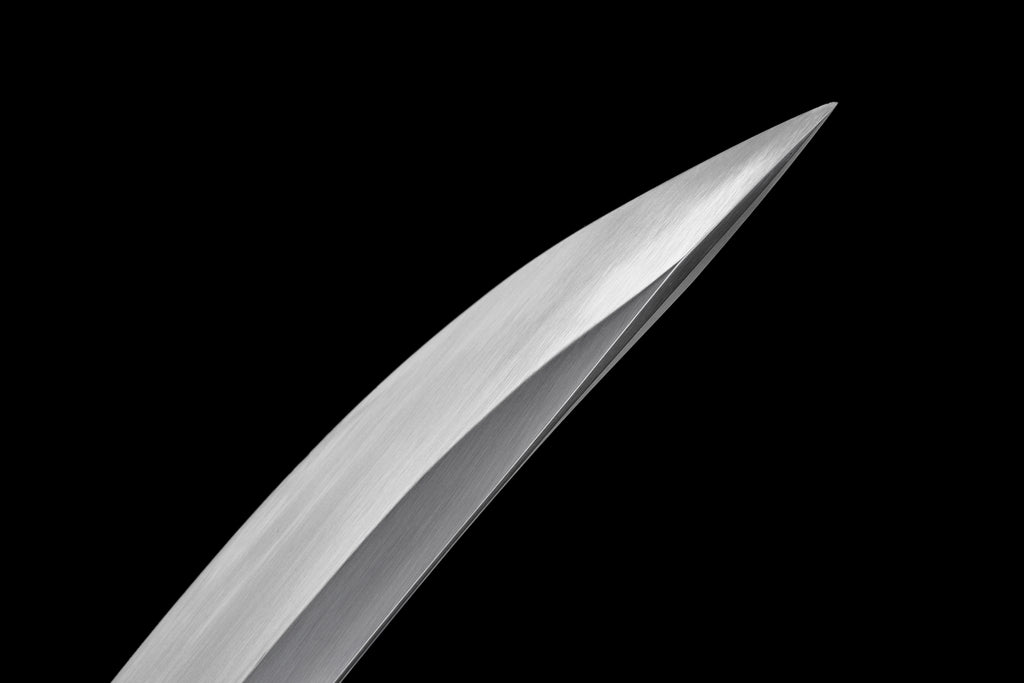 Blade: Forged from high manganese steel, the 60 cm blade is polished to a silver sheen, designed for wide sweeping strikes and precise cuts.