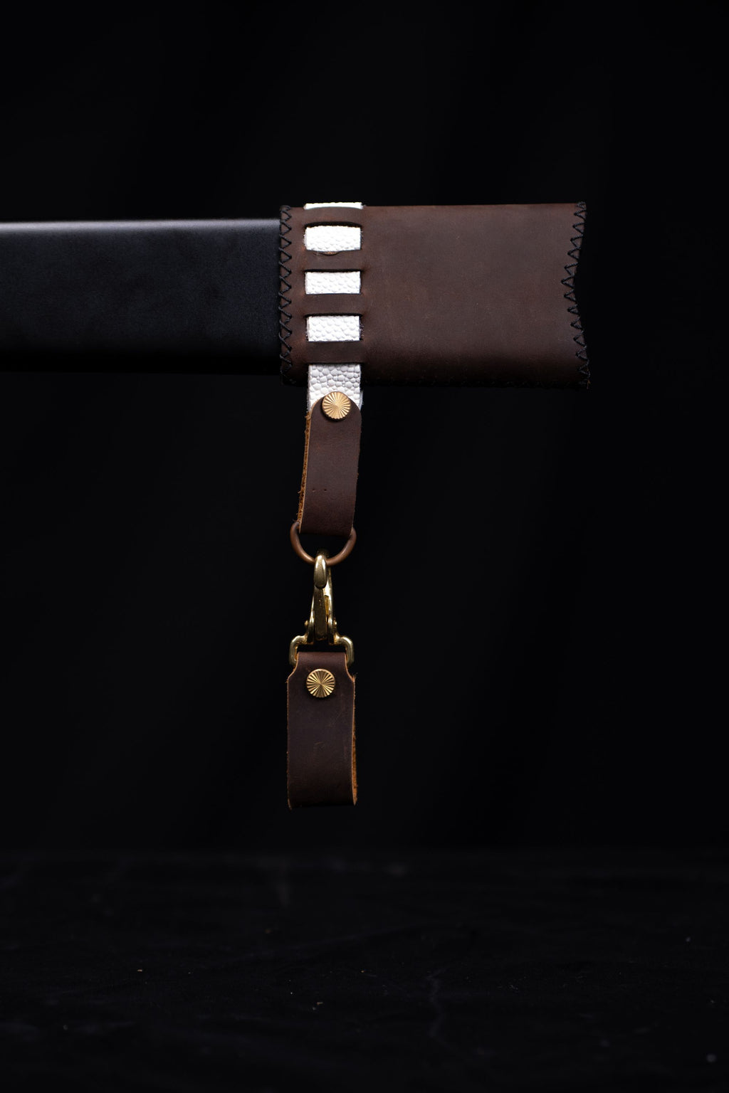 Handle: The wooden core is wrapped in cowhide leather for a secure and comfortable grip, designed for both single-handed precision and two-handed power.