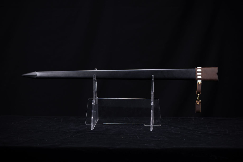 Guard: The long, slightly curved stainless steel cross-guard ensures reliable hand protection while adding to the sword’s historical aesthetics.