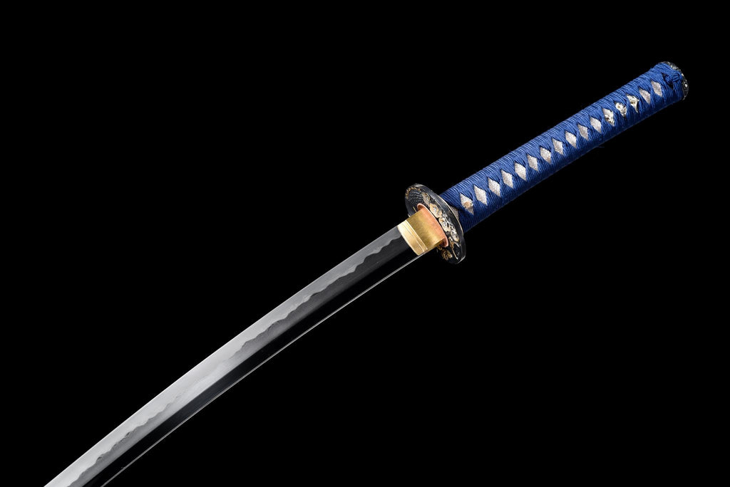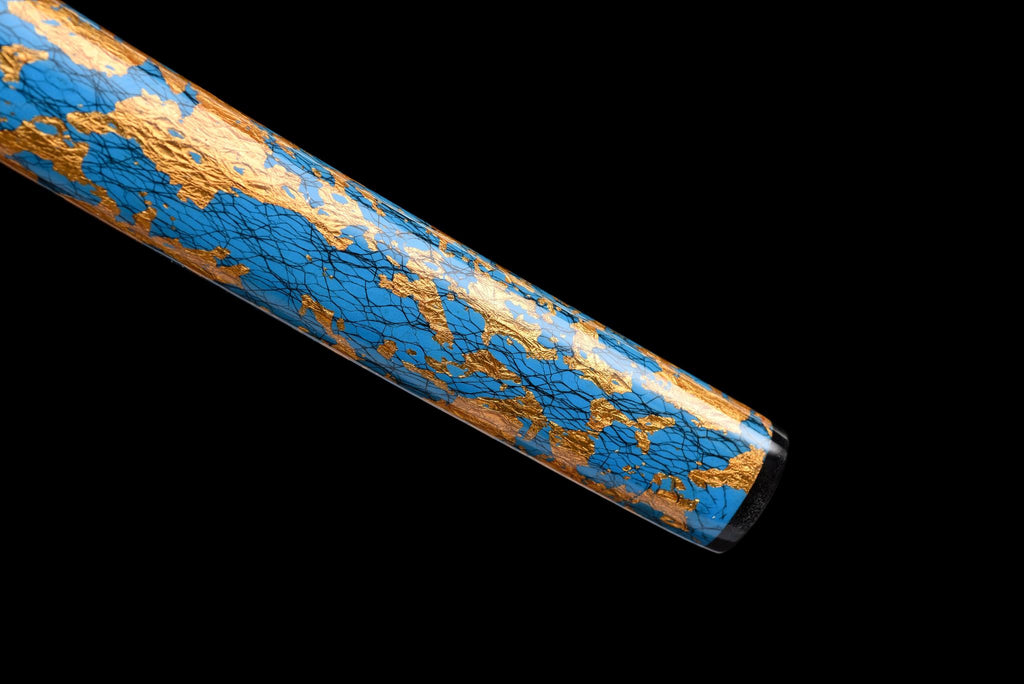 Every aspect — from the dark indigo handle to the luminous blue-and-gold saya — has been crafted with reverence for traditional Japanese artistry. The result is not merely a weapon, but a sacred symbol of discipline, spirit, and timeless honor.