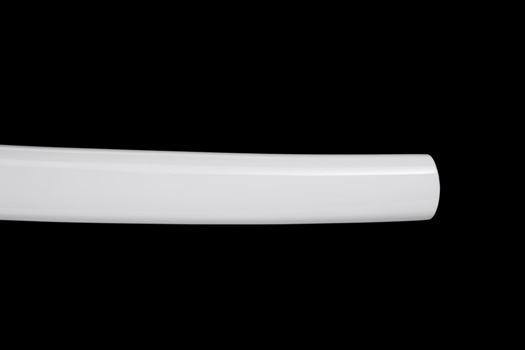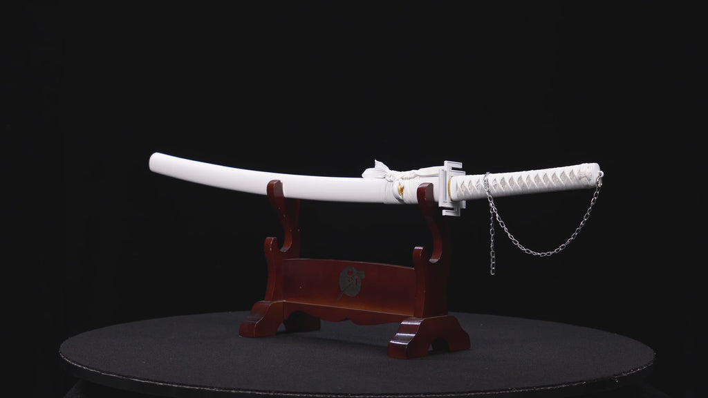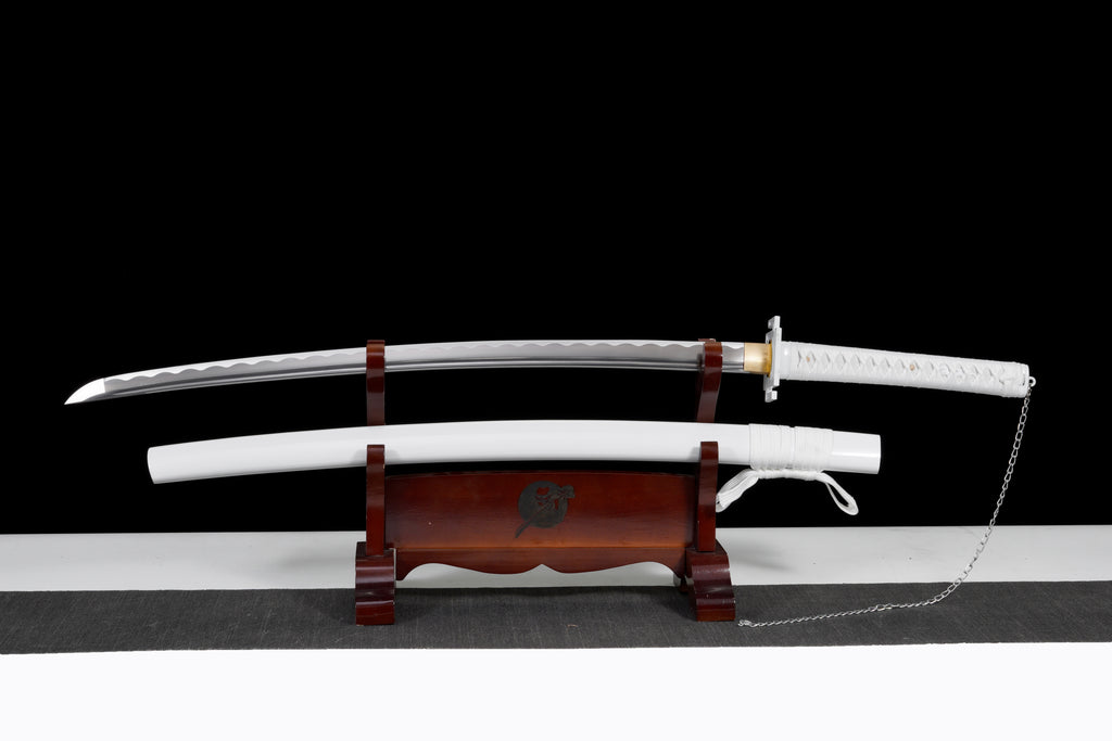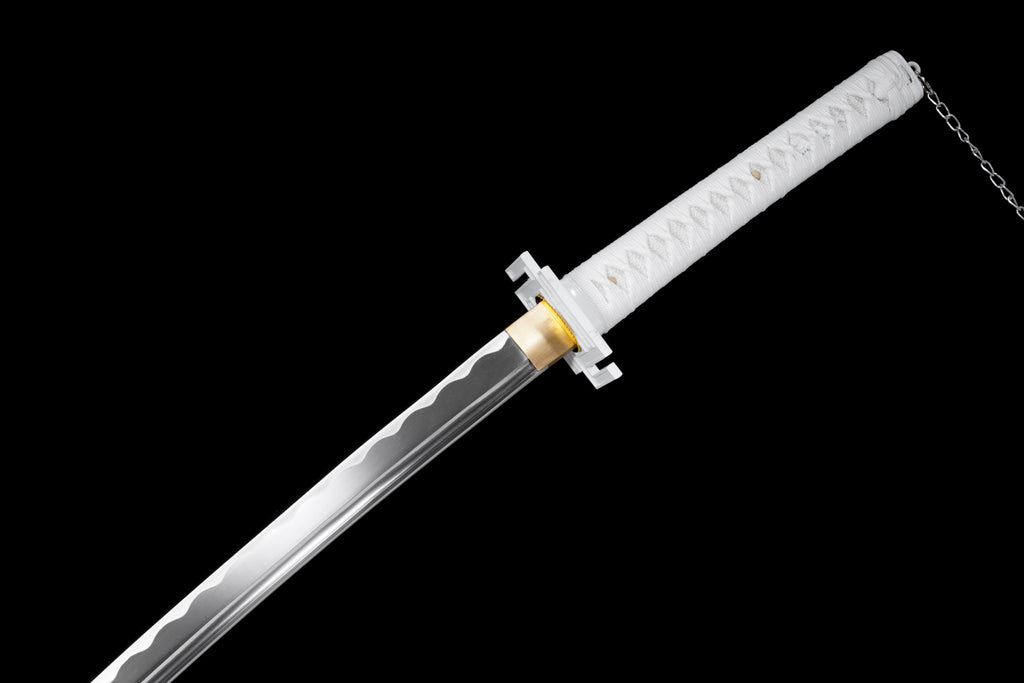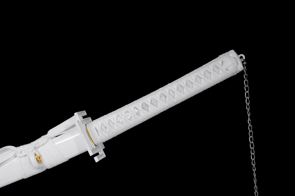 Scabbard (Saya 鞘): Finished in glossy white, the saya includes a chain attachment, staying true to the anime’s original look while protecting the blade.